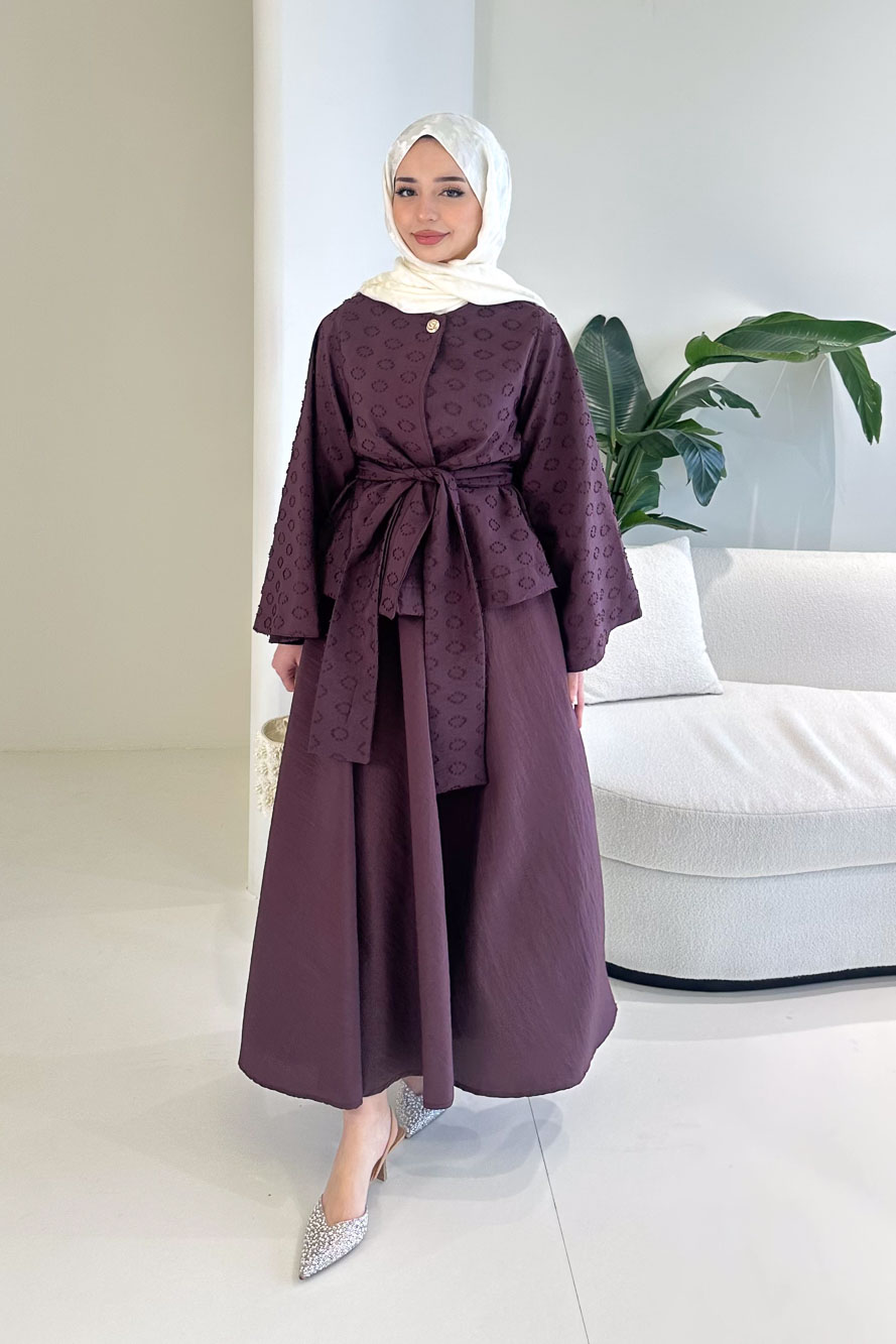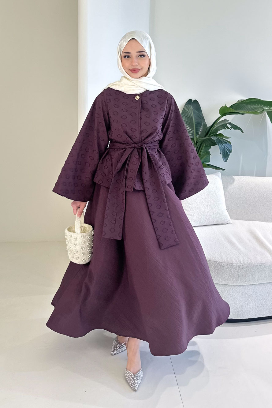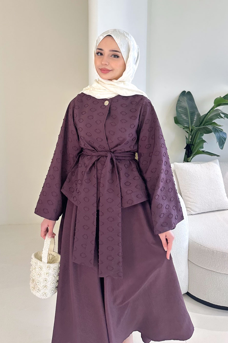 Düz kesim formu ve bağlamalı tasarımıyla sade ama güçlü bir siluet sunar.