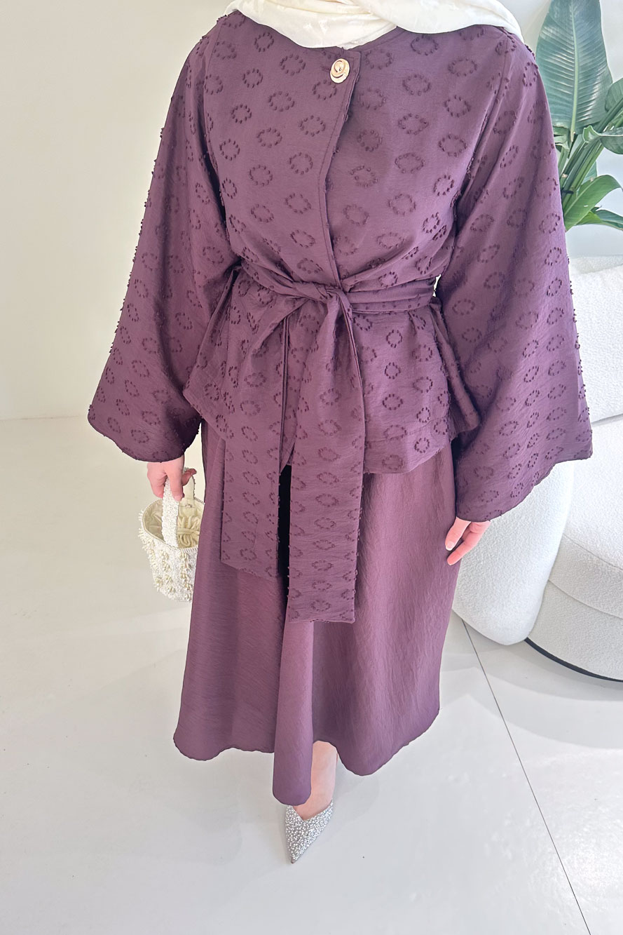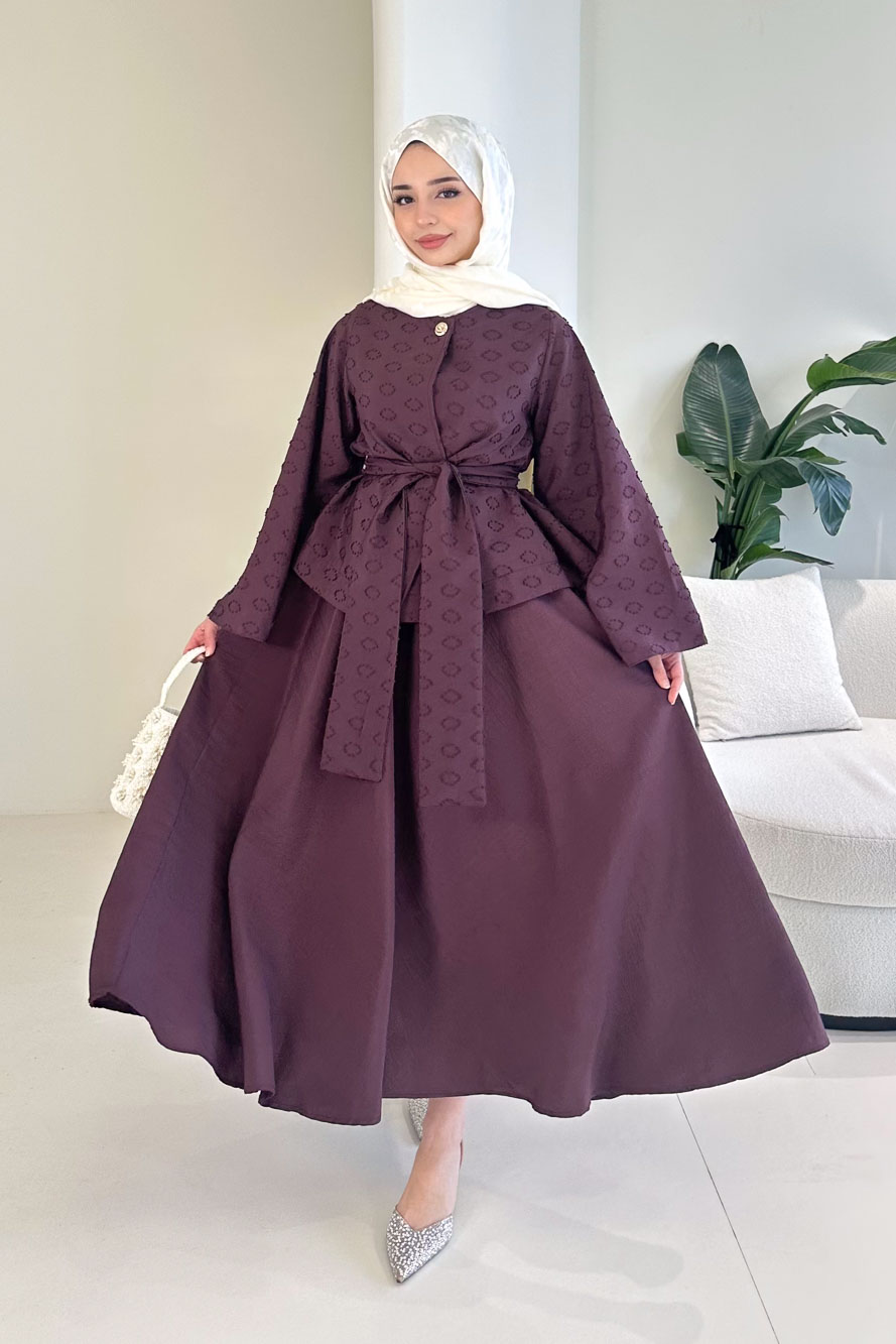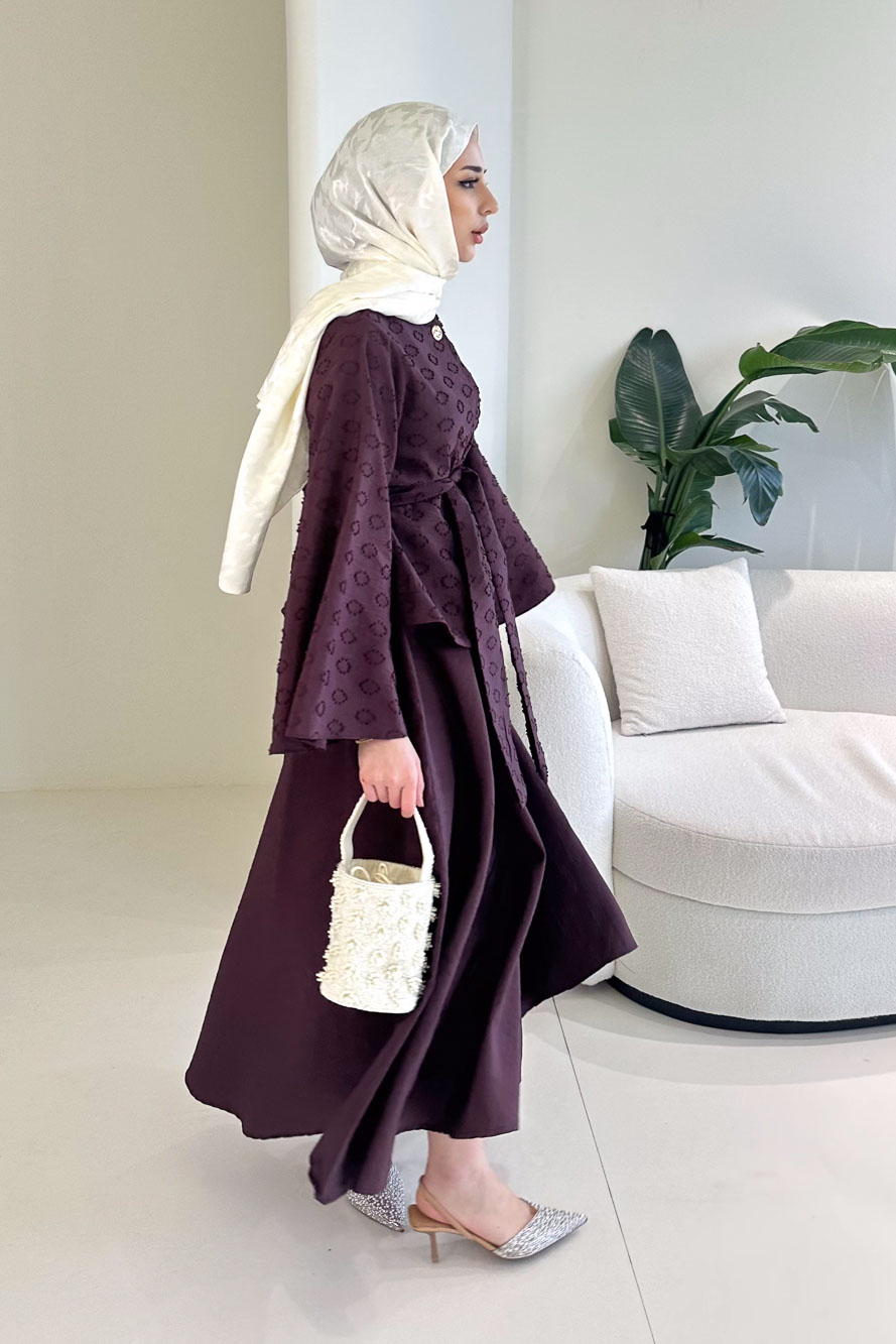 Düz kesim formu ve bağlamalı tasarımıyla sade ama güçlü bir siluet sunar.