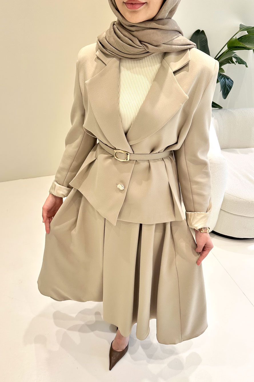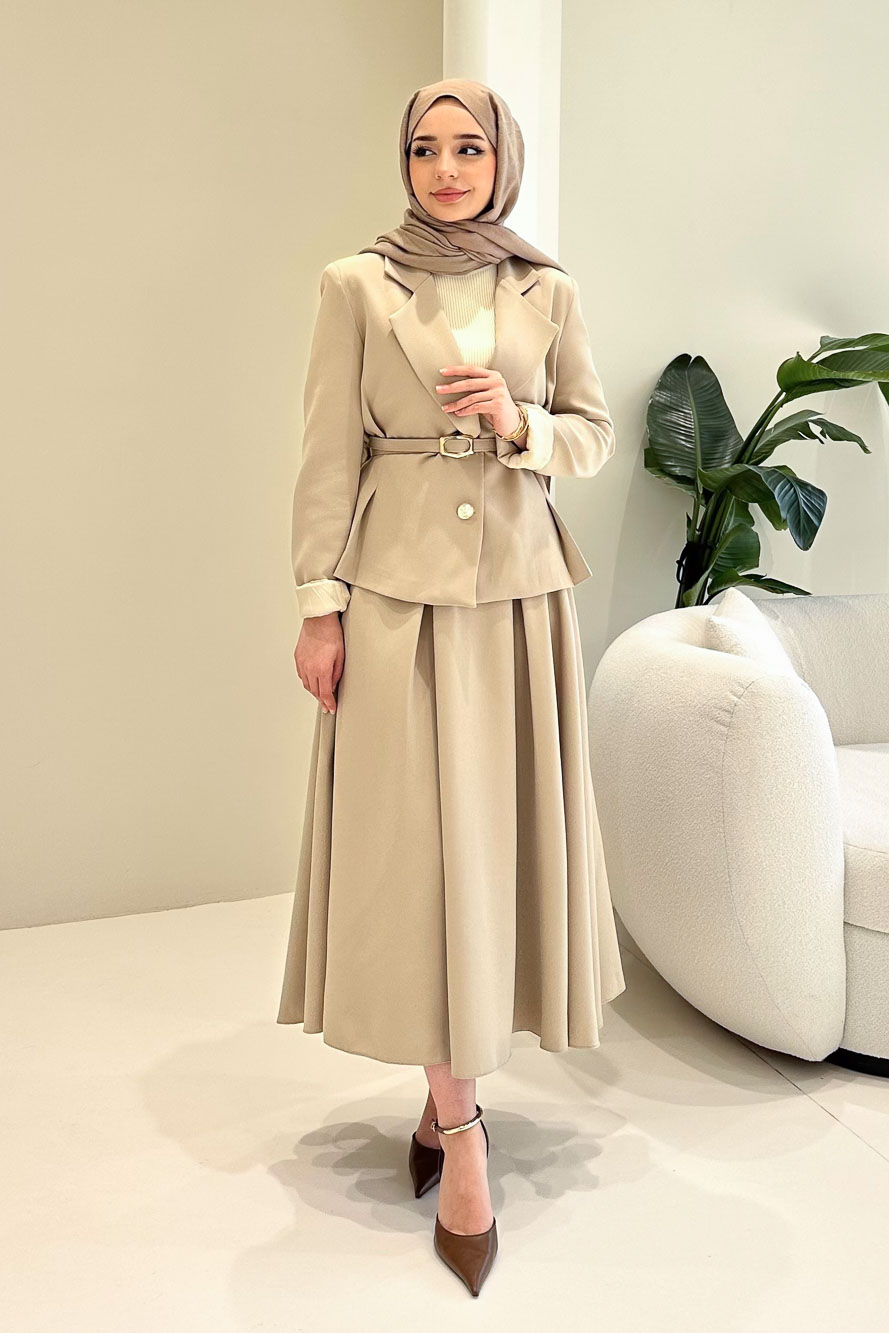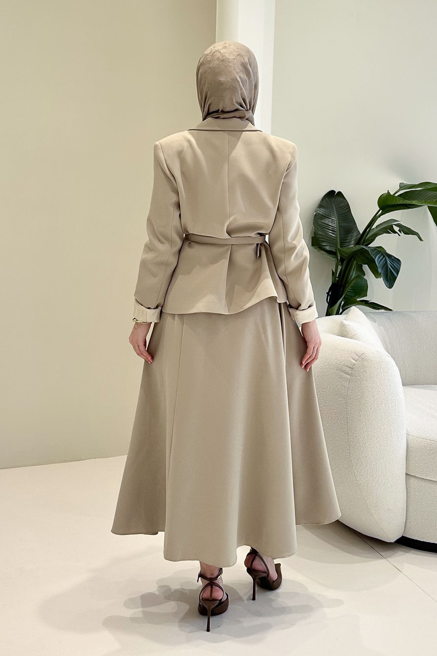 Viviana Ceket Etek Takım - Bej
