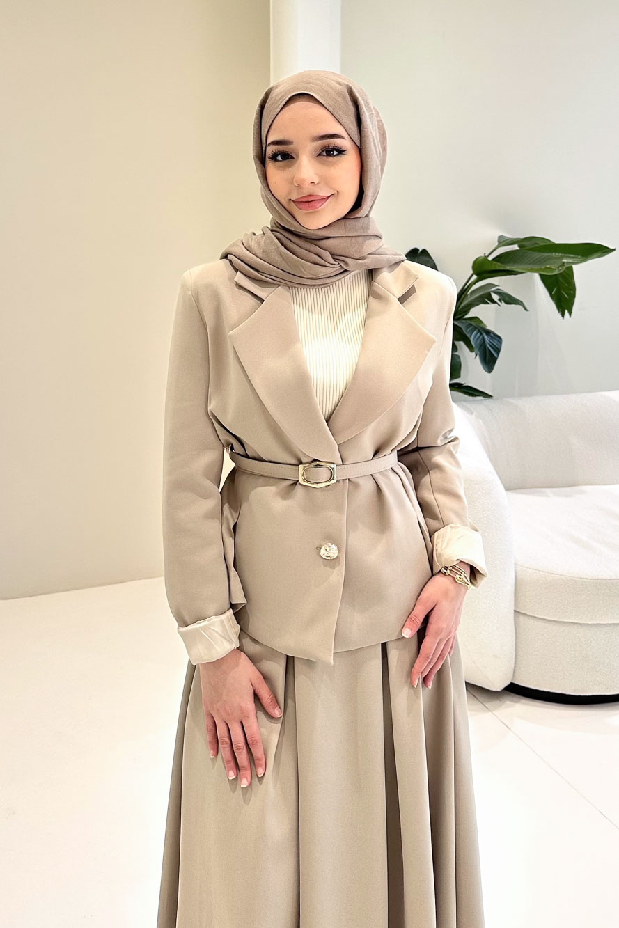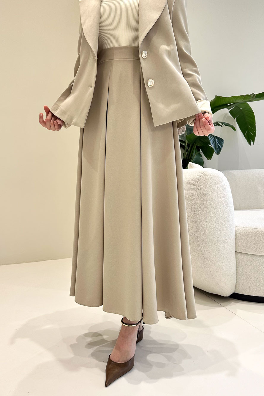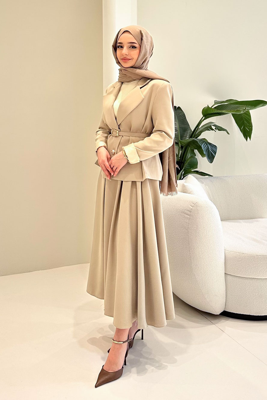 Viviana Ceket Etek Takım - Bej