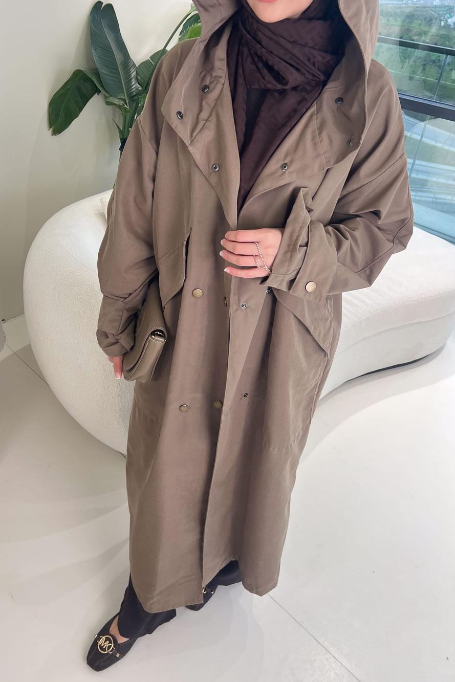 Yujin Yan Çıtçıt Detaylı Kapüşonlu Trençkot - Kahverengi