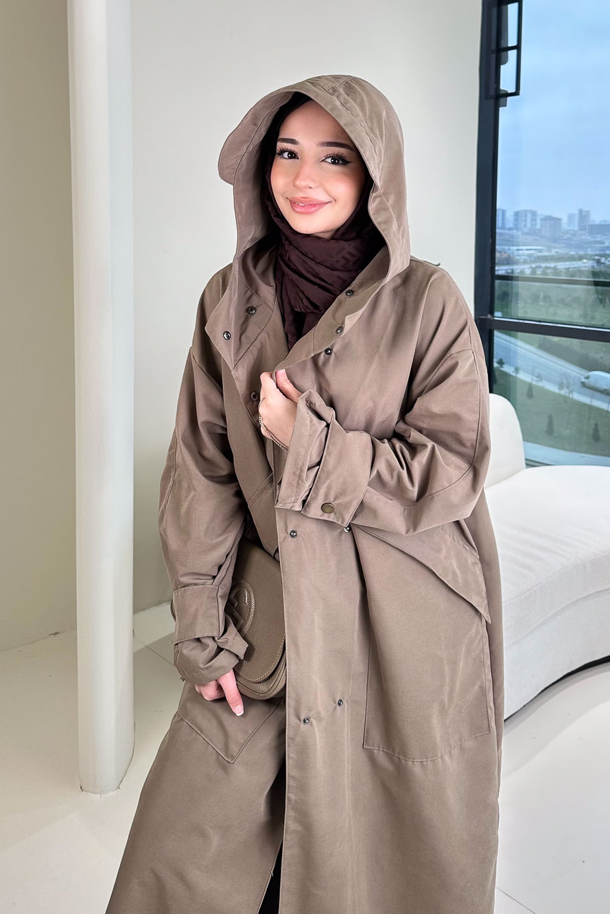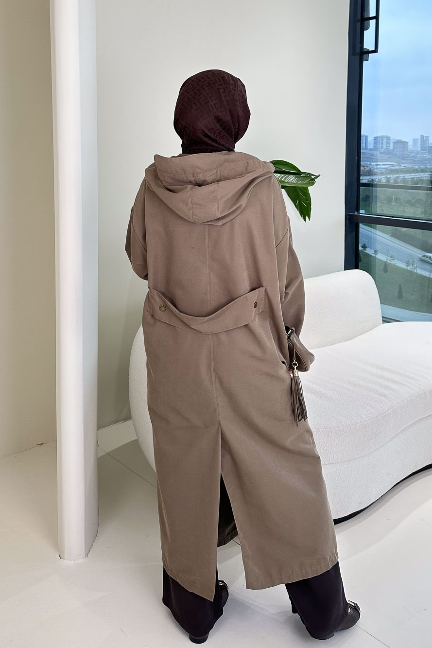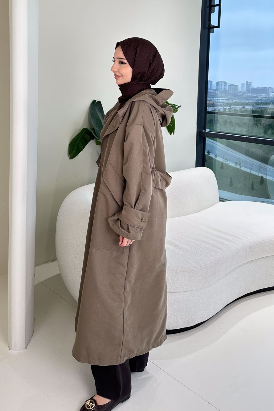 Woné Kapüşonlu Geniş Cepli Trençkot - Vizon