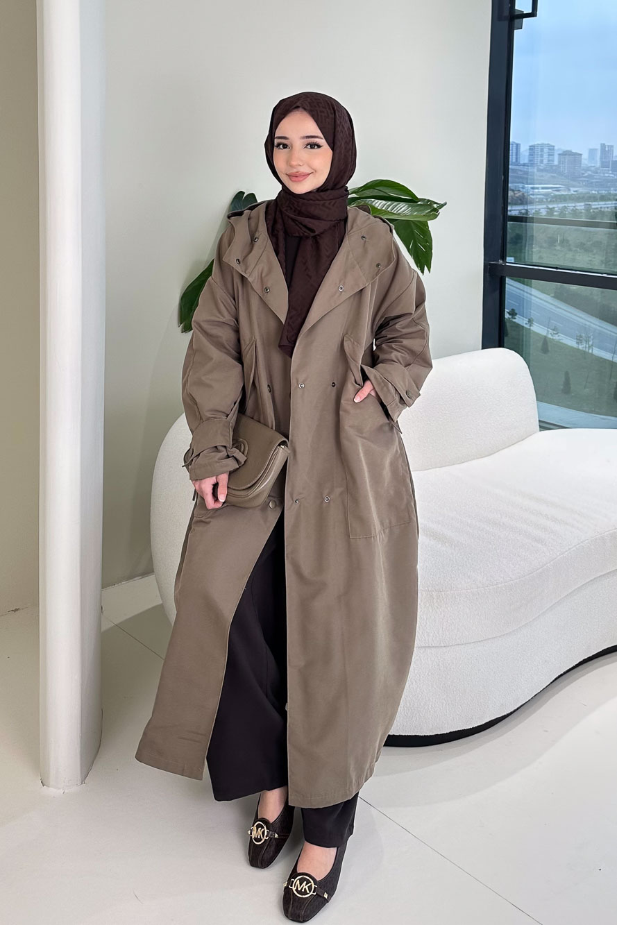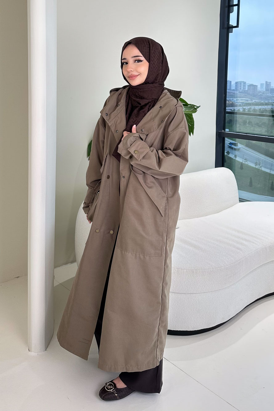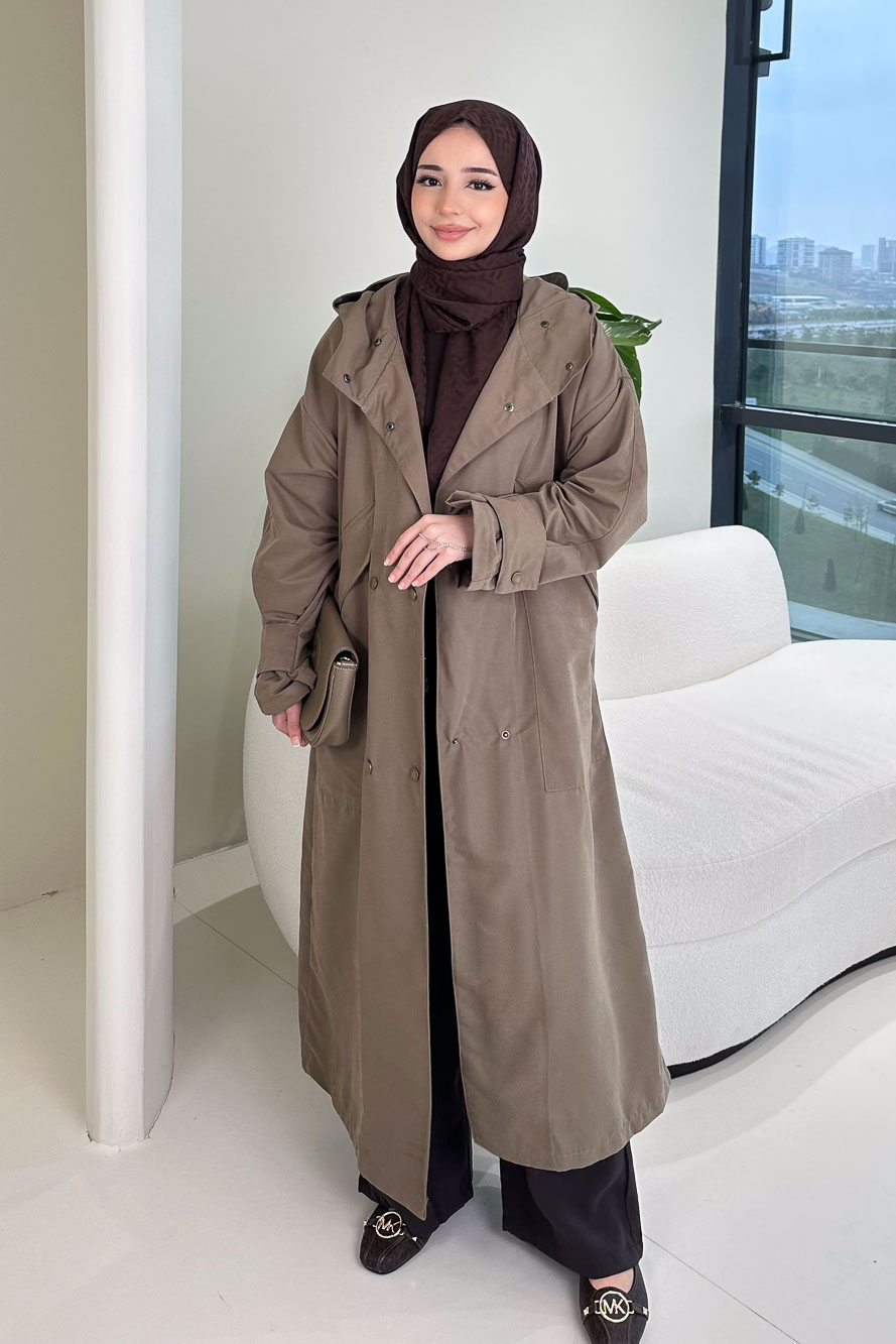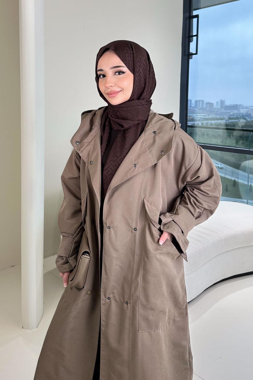 Woné Kapüşonlu Geniş Cepli Trençkot - Vizon