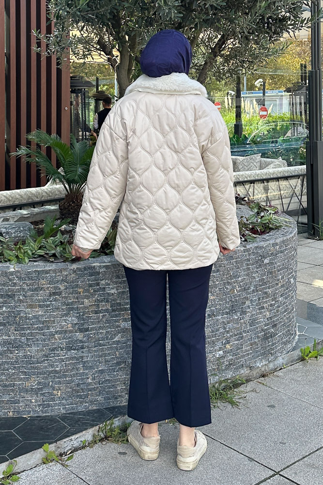 Düz Kısa Kürk Mont - Ekru