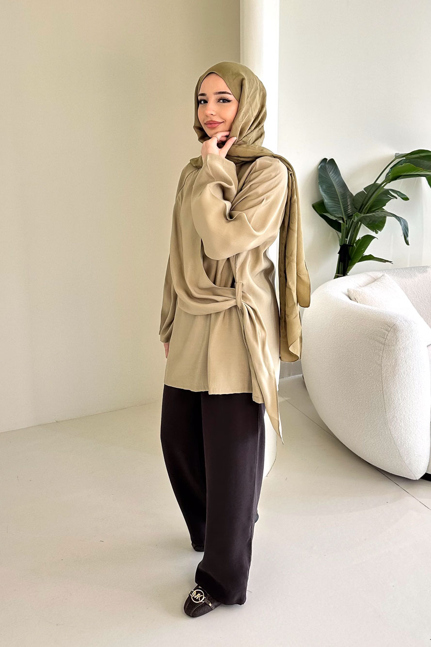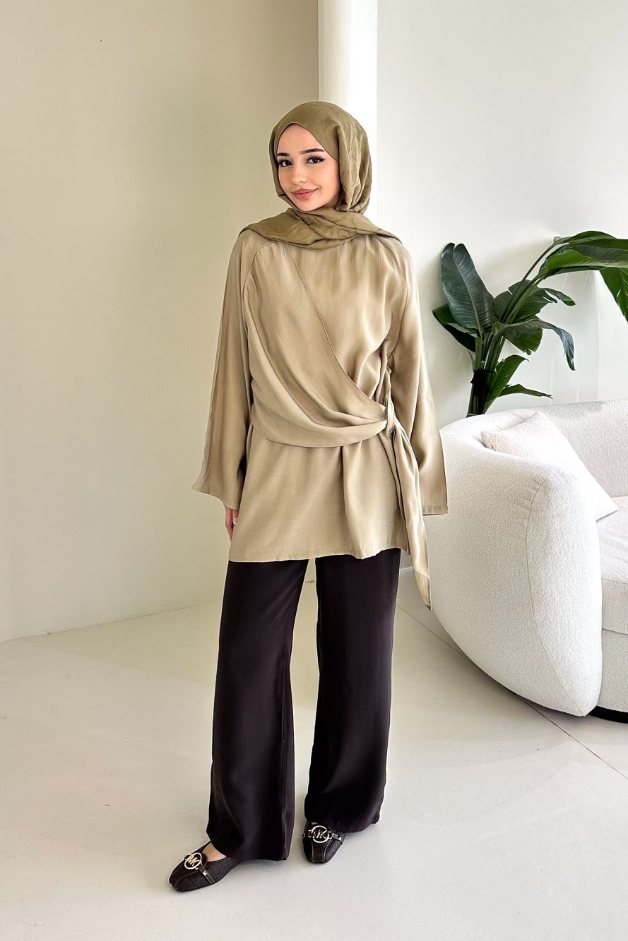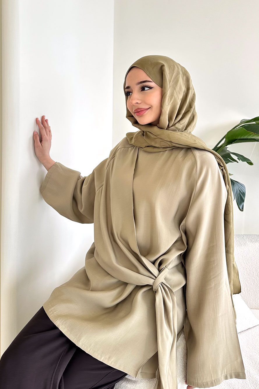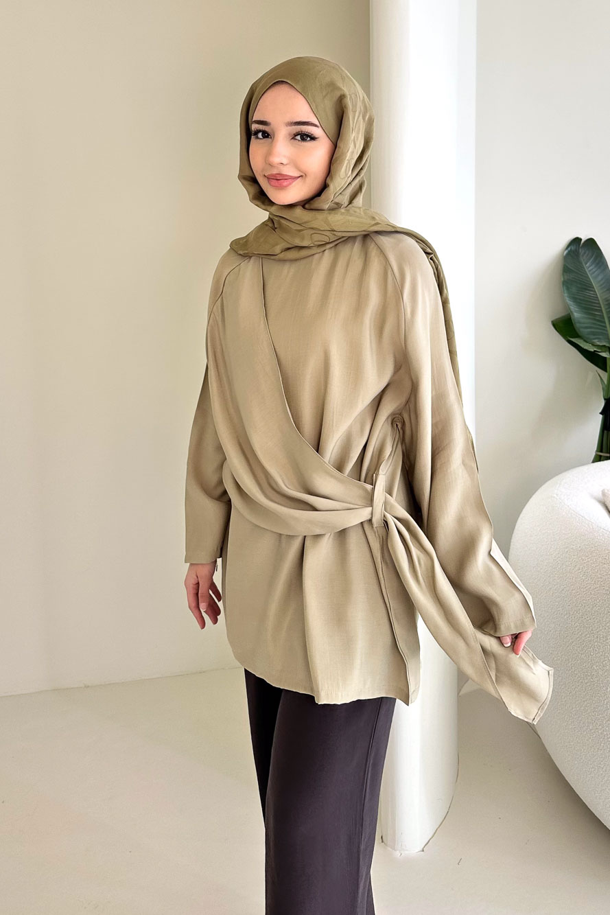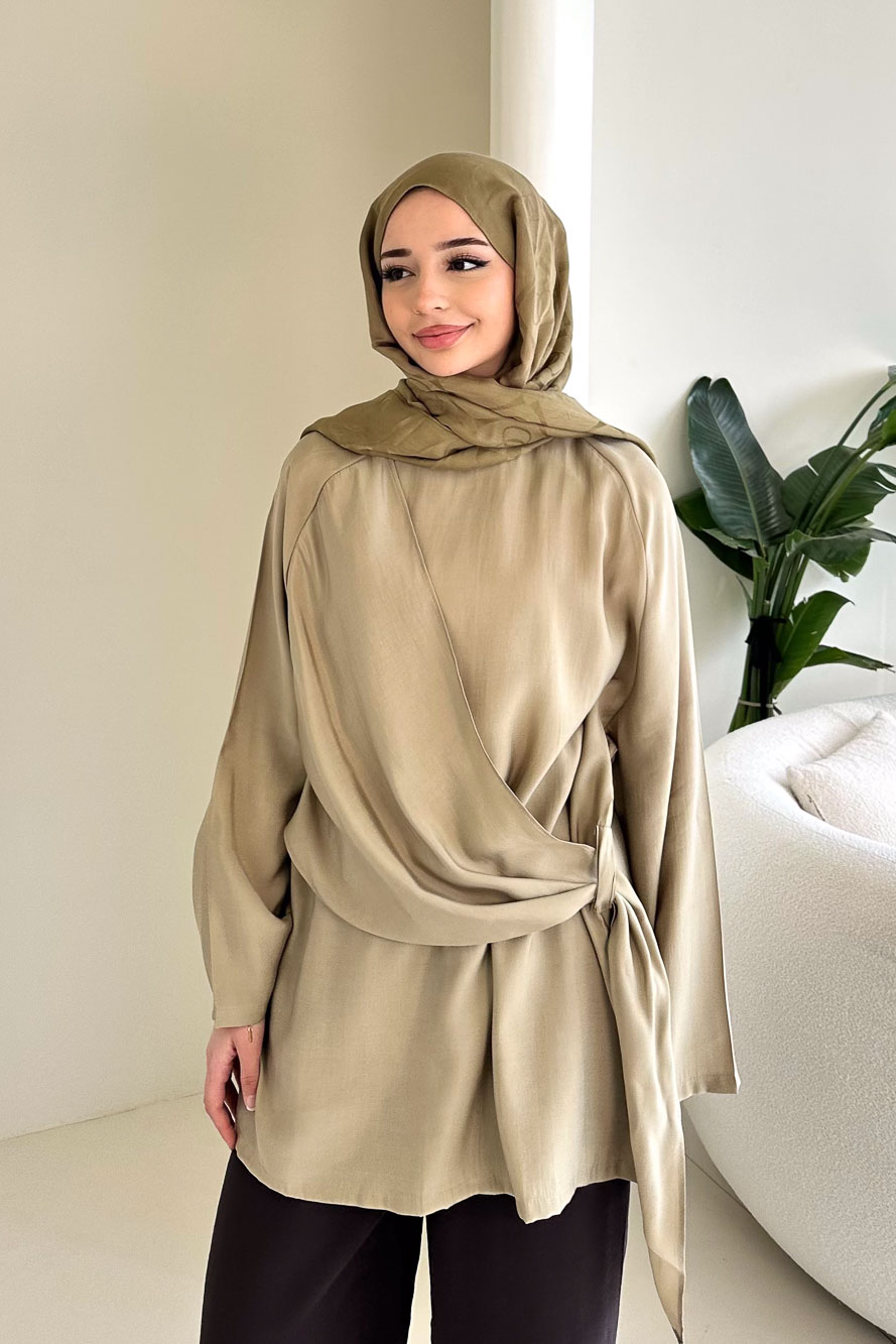 Zarif şal detayı ve modern bağlama tasarımıyla stilinize şık bir dokunuş katar. Hafif dokusu sayesinde gün boyu konforlu bir kullanım sunar.