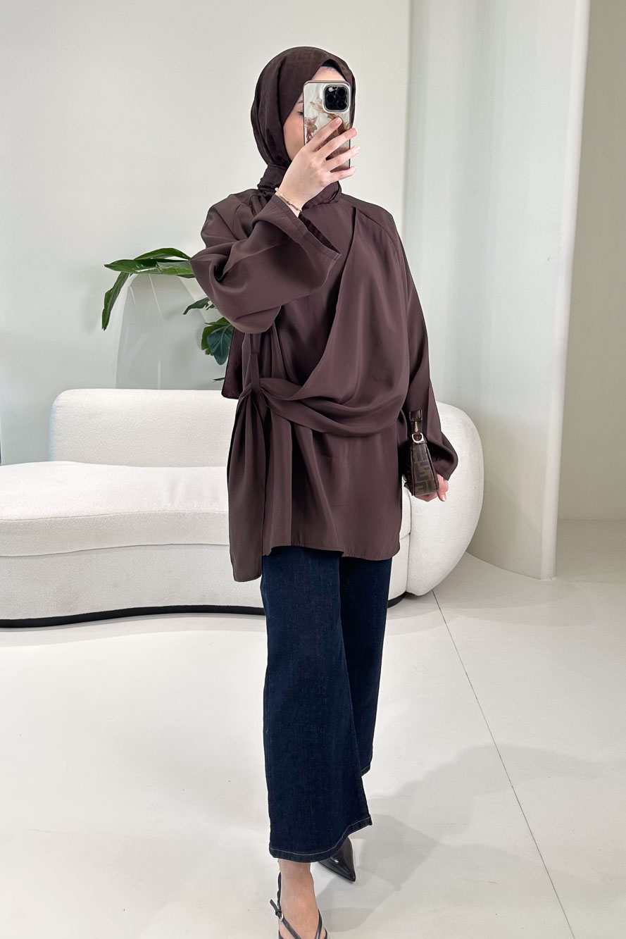 Zarif şal detayı ve modern bağlama tasarımıyla stilinize şık bir dokunuş katar. Hafif dokusu sayesinde gün boyu konforlu bir kullanım sunar.